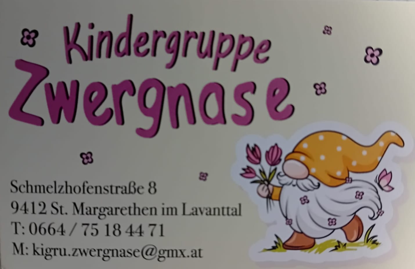 Die Kindergruppe Zwergnase befindet sich am Fußballplatz von St. Margarethen. Mit ausgedehnten Entdeckungsreisen durch Wald und Wiese erleben die Zwerge das Landleben und die Natur. Die Betreuerinnen stehen von 6.30 bis 16.30 Uhr für die liebevolle Betreuung und das Wohl der Kleinen bereit.