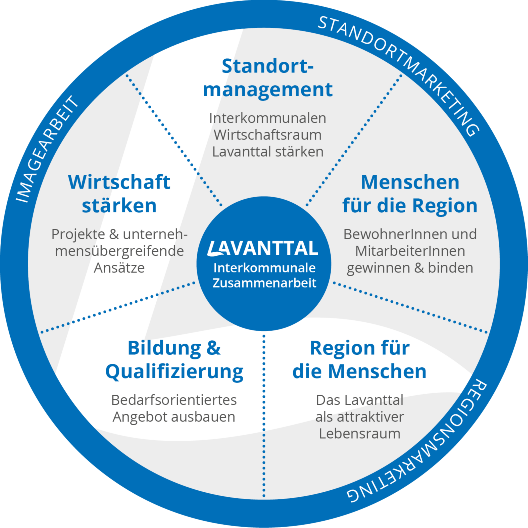 Das Regionalmanagement Lavanttal, im Eigentum der neun Lavanttaler Gemeinden, versteht sich als Motor für zukunftsorientierte Regionalentwicklung. Gemeinsam mit anderen regionalen Akteuren und Partnern bearbeiten wir Projekte und Maßnahmen in unseren sieben strategischen Schwerpunktfeldern.